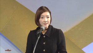 Today we are receiving Dr. Hak Ja Han Moon at this Hyojeong Family Festival, with people filling this sports center. I am so impressed…. When I was at Waseda University, CARP was involved with many social efforts for the family. Some of you who were there at that time; you are not just my classmates, you are my brothers and sisters…. To change the Constitution is a serious matter for the sake of the future: what is important is to build families based on love – this is the most important point for any society. And this is the subject your movement, led by Hak Ja Han Moon, is fully engaged with.