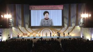 Dr. Hak ja Han Moon continued her visits to the Japanese prefectures, speaking to an audience of 10,000 people for the Hyojeong Family Festival in Osaka on November 21. Following the Kanagawa and Nagoya Hyojeong Festivals, Dr. Moon, the True Mother returned to Japan because the Unificationists of Japan were yet again able to amass 10,000 people to listen to True Mother’s important words.