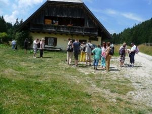 Nach dem Friedensgottesdienst war Zeit für die Teilnehmer, sich bei einer Jause auszutauschen und Kraft zu sammeln für den 1½-stündigen Friedensmarsch, der uns nach Slowenien ins Bergdorf Sveta Ana führte. Zwischen den Gesprächen wurden internationale Lieder gesungen, in die die Bewohner des Dorfes mit einstimmten.