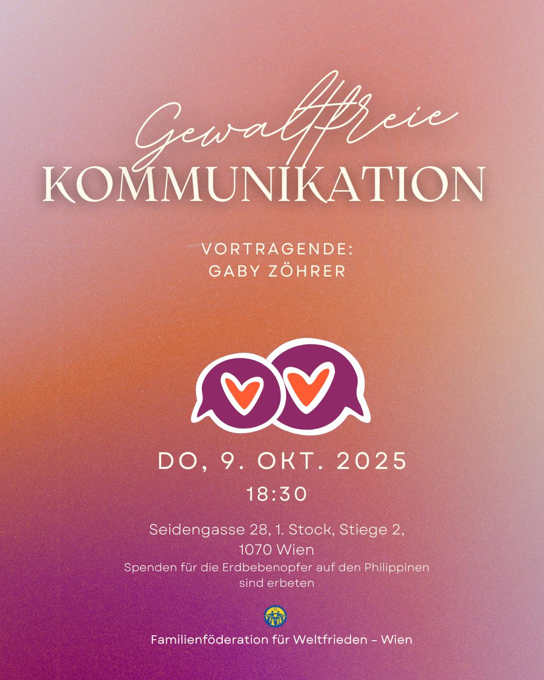 Oktober 9, 18:30 - 20:30 Gewaltfreie Kommunikaton 1070 Wien, Seidengasse 28, 1. Stock Seidengasse 28, 1. Stock, 1070 Wien, Wien, Österreich Vortrag von Frau Gaby Zöhrer